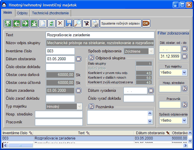 Aplikace pro evidenci majetku a materiálu v MS Excel.