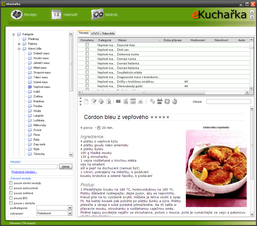 - Možnost aktualizace receptů z internetu - získáte tím tisíce receptů.