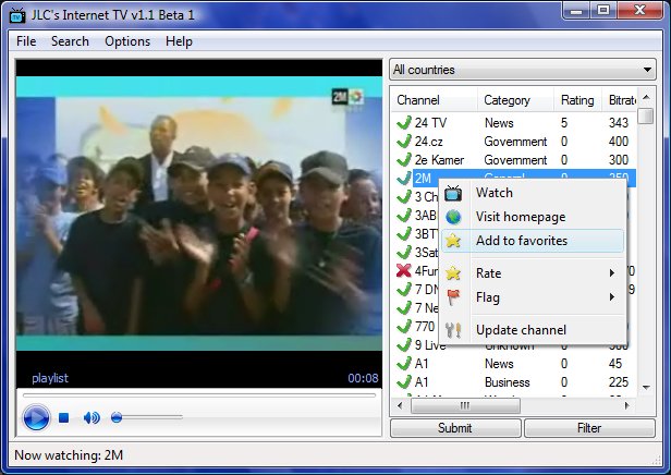 Parametry programu JLCs Internet TV 1.1 beta 6