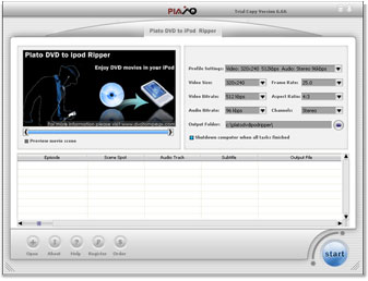 Parametry programu Plato DVD to iPod Ripper 6.82